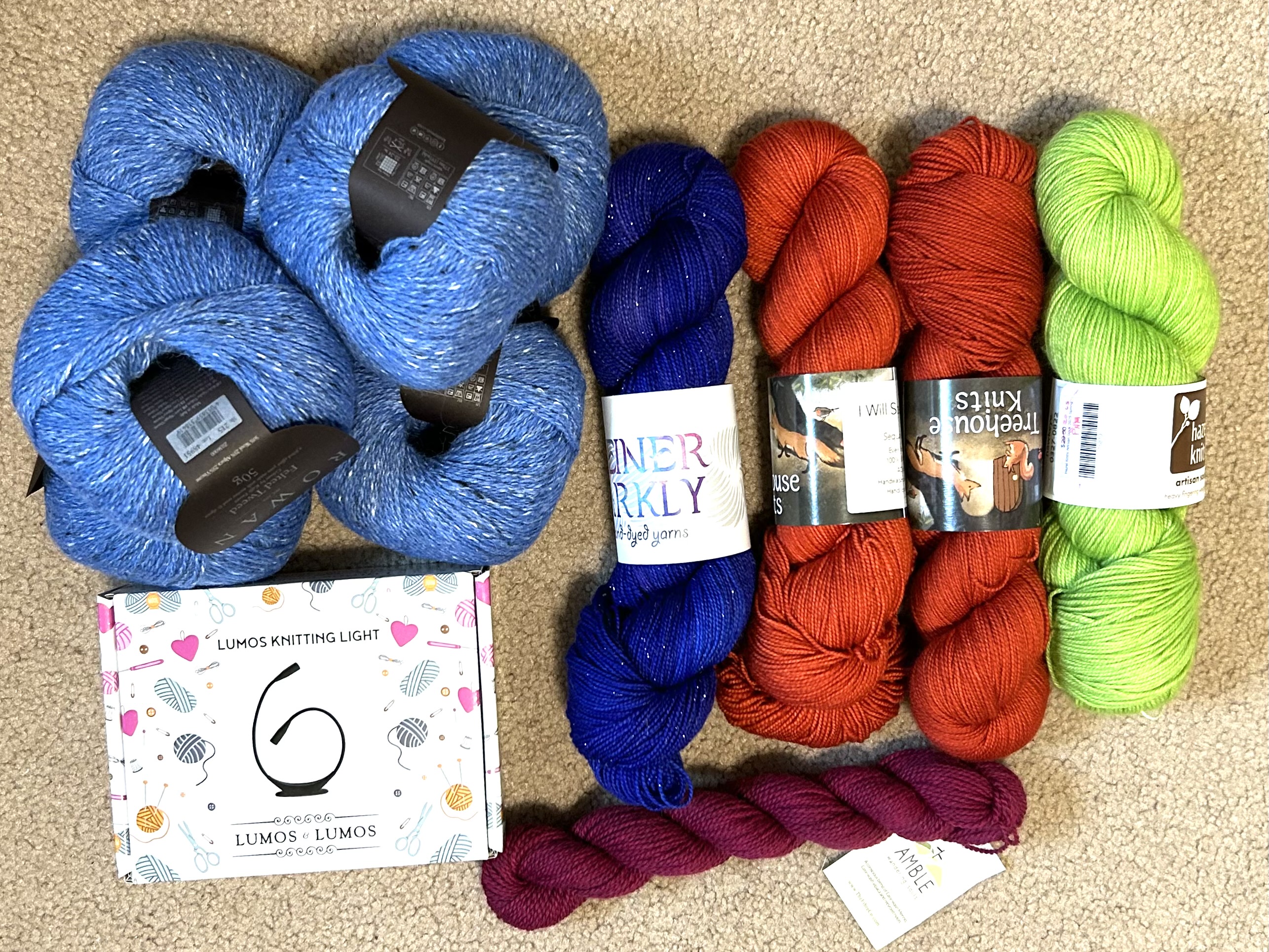 The orangey red yarn is from Treehouse Knits. I bought it at Knotty Lamb. I plan to make the Gentle Spirit Tee with it. It should be good for summer. I came across this pattern at Knotty Lamb, too.