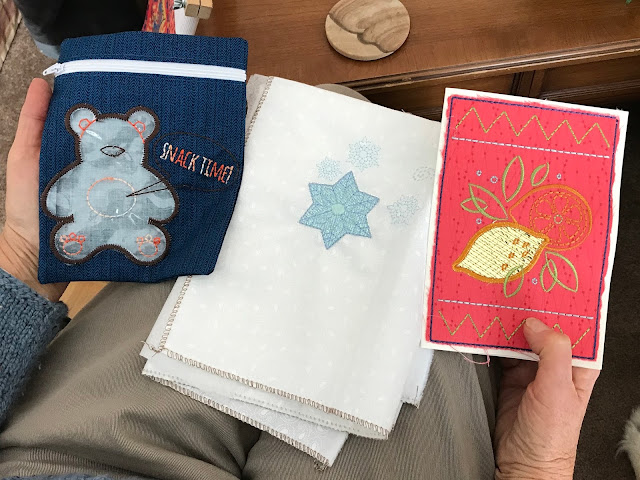 Earlier in the week, Vintage Stitchers met at Rebecca's. She was working on this block from the Borboleta BOM quilt from Hat Creek Quilts.